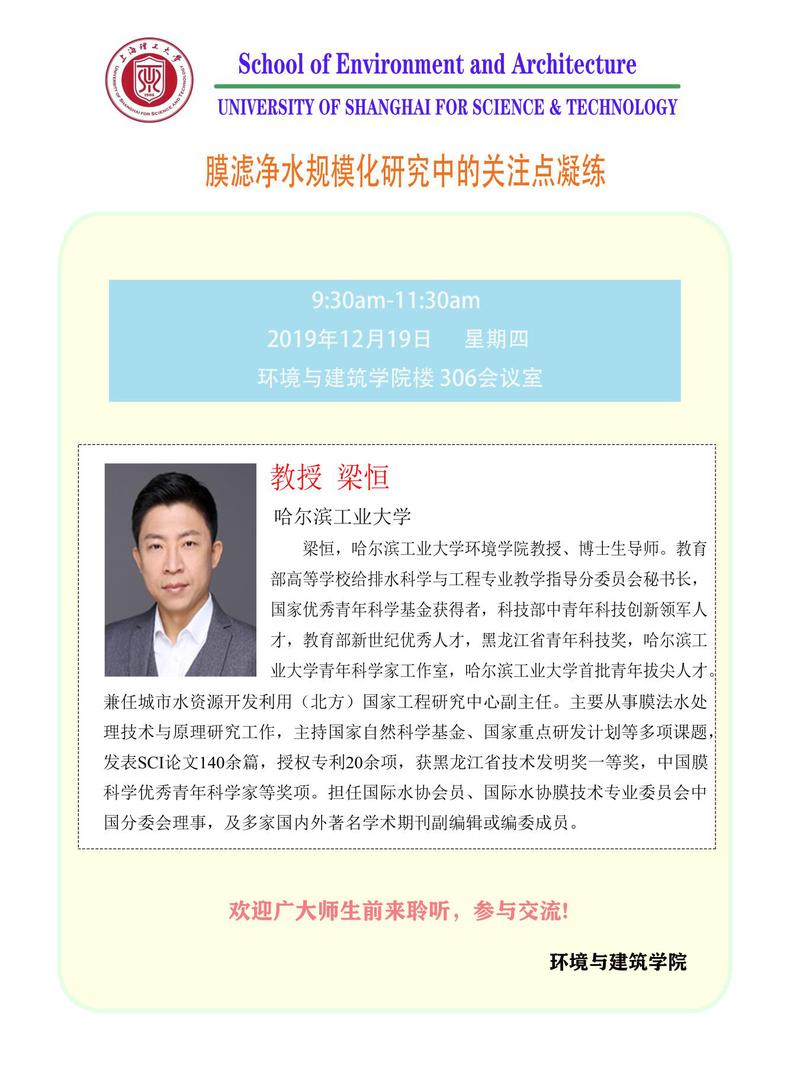 学术报告:膜滤净水规模化研究中的关注点凝练