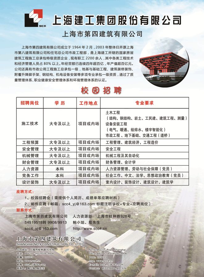 上海建工集团股份有限公司上海市第四建筑有限公司招聘信息