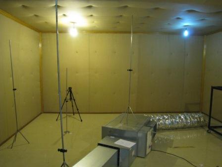 半消声室与风量测试本体相连,并用利用消声风管连接,可以为消声室内提供经过消声和计量的送风。实验室可以进行送风口噪声测试,VAVbox等的噪声测试,因此该实验室可进行各种风口、风阀研发的创新性实验。