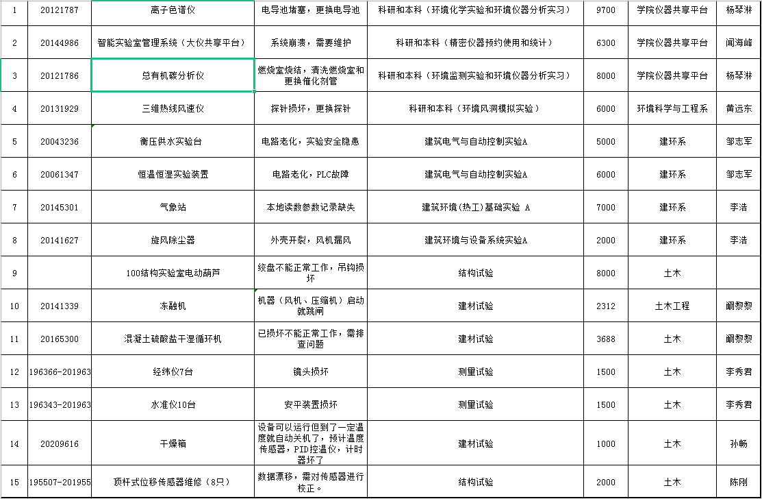 经各系申请,学院讨论。现确定2021年实验室设备维修经费使用项目公示如下:如有异议请与12月10日中午12:00之前联系实验中心 18621805866 王非