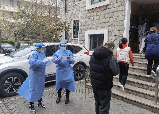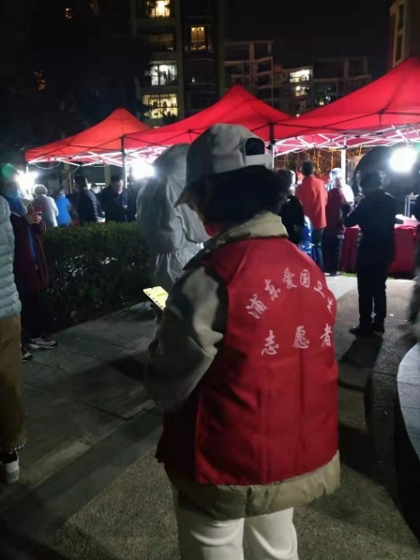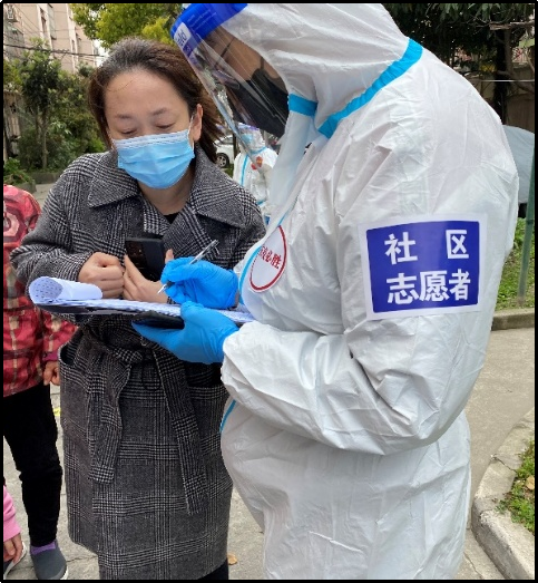 支部入职不久的王苏然早在3月中旬就到长海路街道市光路第二居委员会积极报名并担任抗疫志愿者,在3月18日杨浦区非重点区域防控时他协助小区进行了核酸检测。小区老年人相对较多,有许多居民并不知道如何进行核酸检测的健康云采样码登记,同时,在核酸检测时如何有序排队,如何确保每家每户应检尽检,都是王苏然在志愿者工作期间不断思考、不断改进的工作内容。4月1日开始,浦西进行疫情防疫封控,王苏然工作任务更加艰巨。由于同一时间下楼做核酸检测的居民过多,即使是分单元组织依然会在登记记录时因个别几位居民没按规定时间下楼而导致登记遗漏等问题,最后需要补缺补差挨个打电话进行确认。仅仅只是4个小时的小区核酸检测,王苏然所在小区所有检测人员共527人,就使得他的口罩中积聚了大量的水珠。为了保证视线清晰,他尽量让自己用鼻子缓慢呼气,保证眼镜不被水气遮挡。在接下来的封控期间,王苏然随时将接受分发蔬菜、帮助小区居民处理生活垃圾、协助社区处理居民的紧急需求等使命。