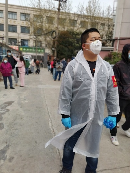 支部党员崔纪飞平时就待人随和、乐于助人,疫情出现,崔纪飞接到通知后第一时间向居住地所在党组织进行了报到。近期小区封控管理,他作为志愿者承担起组织楼栋居民核酸检测,帮老年居民生成核酸检测二维码,运送快递外卖,收取清理楼栋内居民的生活垃圾的任务。值得一提的是崔纪飞的爱人作为医护人员奋战在抗疫一线,已经半个月没有回家,崔纪飞克服家中还有不满两岁的孩子需要照顾的困难,仍承担志愿者工作。崔纪飞说:“医护人员才是真的辛苦,我们共产党员在这时就要挺身而出,只有所有人齐心协力,才能守护好我们的城市。”