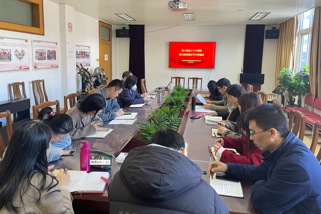 2023年3月3日,9001cc金沙党委理论学习中心组(扩大)在学院306会议室举行了题为“深入领会二十大精神,着力助推高水平大学建设”的专题学习会,学习会由学院党委书记金晶主持。