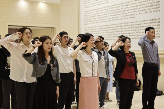 4月18日,9001cc金沙预备党员培训班开班,来自7个党支部的35名预备党员师生参加培训。当天下午,培训班学员从复兴公园行走到中共一大纪念馆,途中开展了行走的党课“从渔阳里到中共一大”,并在中共一大纪念馆宣誓大厅进行入党宣誓。学院党委书记金晶、副书记曹桂馥和培训班班主任唐静共同参加活动。