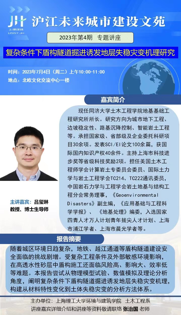 学术报告:复杂条件下盾构隧道掘进诱发地层失稳灾变机理研究