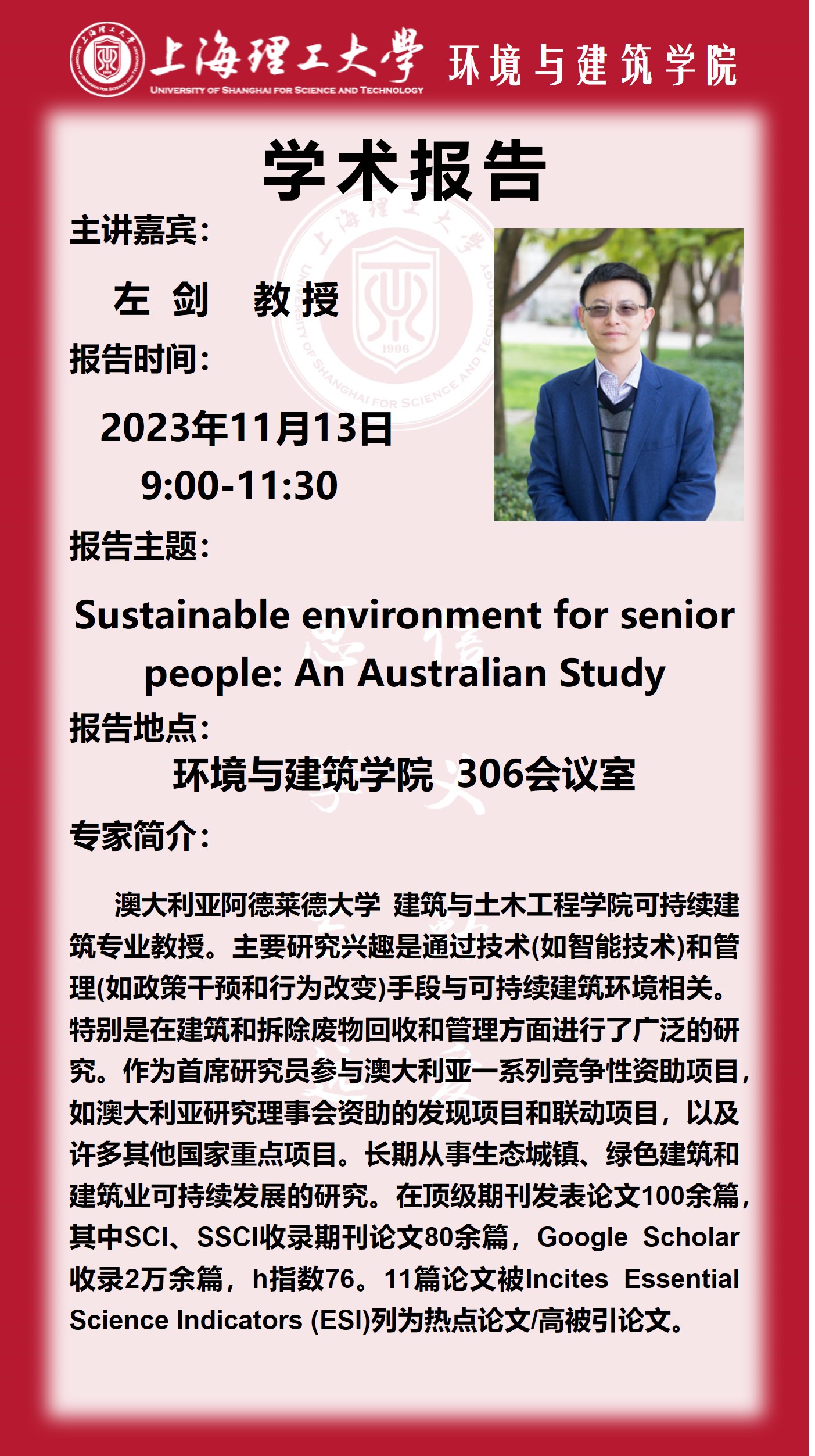 学术报告:Sustainable environment for senior people: An Australian Study