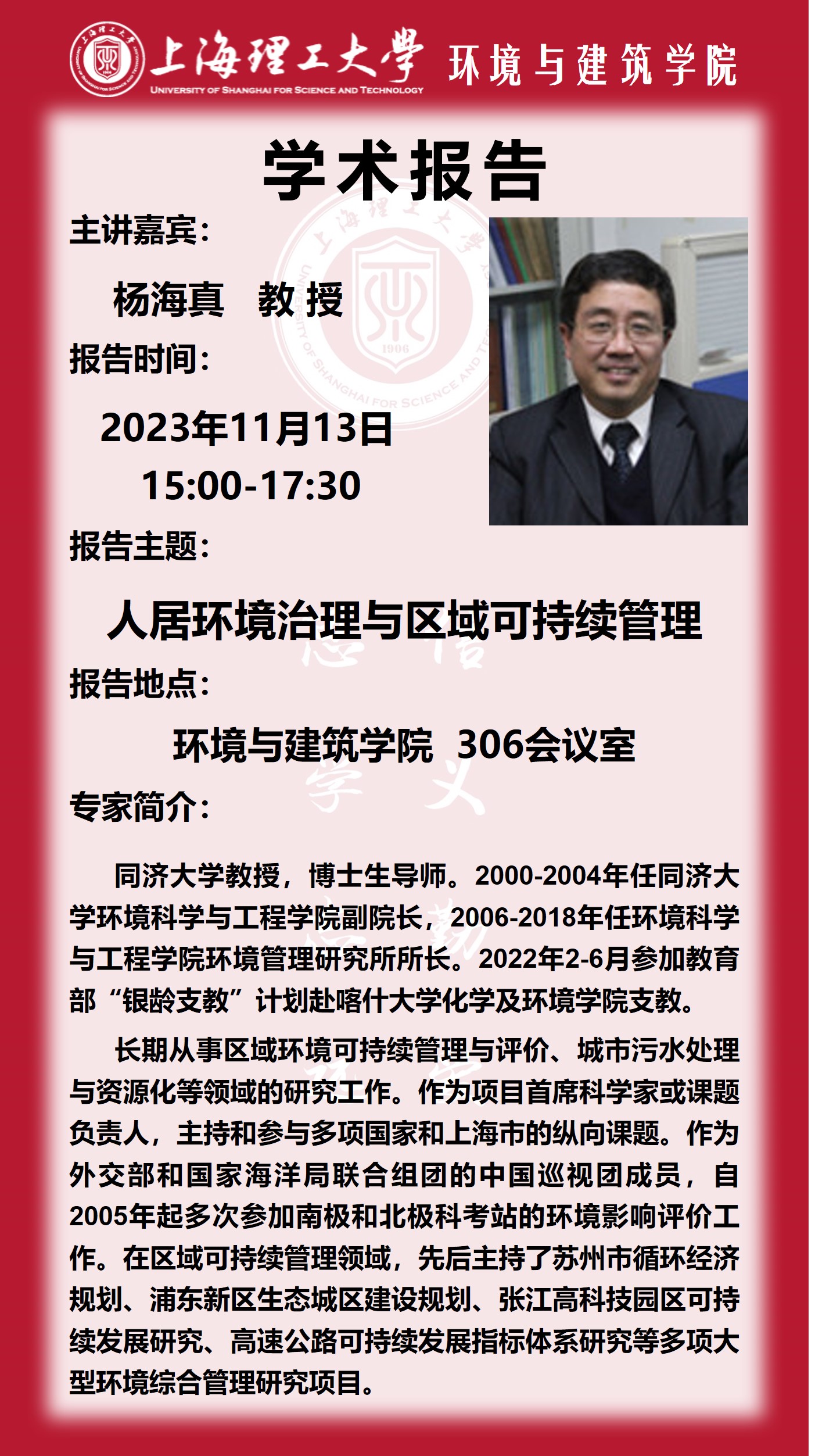 学术报告:人居环境治理与区域可持续管理