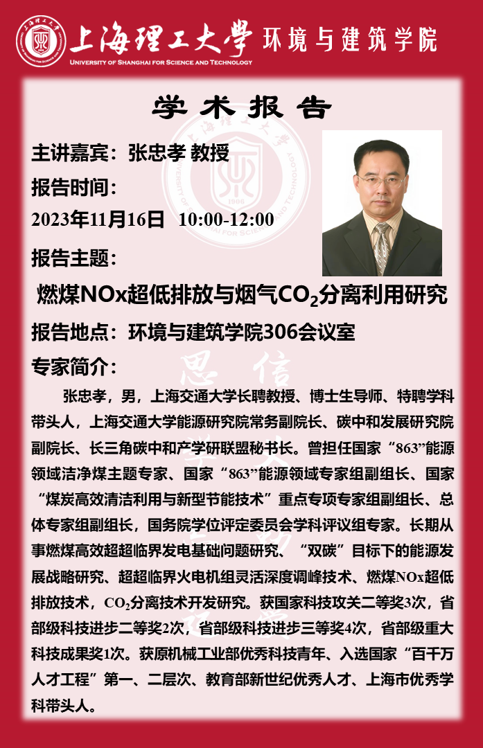 学术报告:燃煤NOx超低排放与烟气CO,分离利用研究