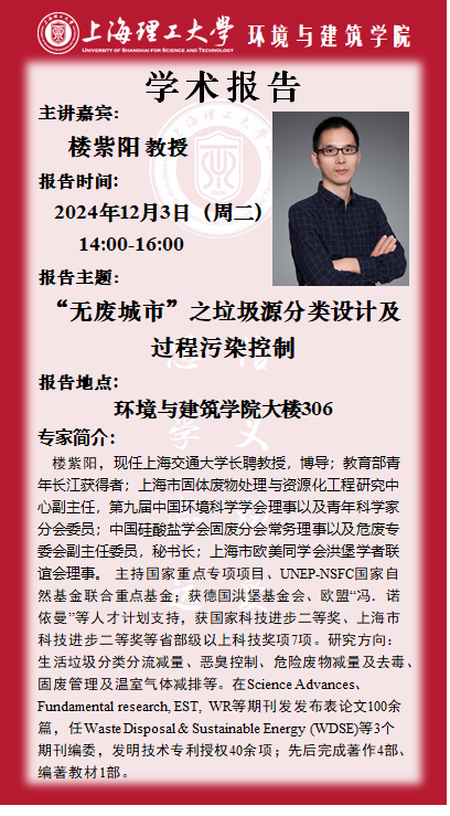 学术报告:“无废城市”之垃圾资源分类设计及过程污染控制